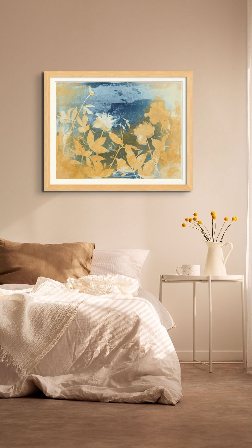 Cyanotypes require UV light to transform an iron-based emulsion to a rich, deep shade of Prussian blue. After placing plants onto paper that I've coated with cyanotype emulsion, I often apply other materials to achieve different textures and colors. The outcomes vary depending on the exposure time, pH of any liquids introduced. The collaboration with nature and element of surprise in every piece keeps this process endlessly interesting.